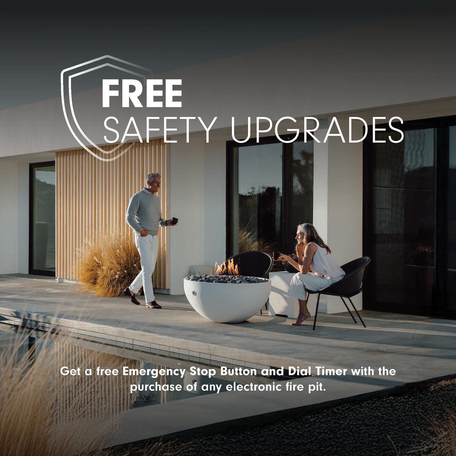 Get a free Emergency Stop Button and Dial Timer with the purchase of any electronic fire pit.