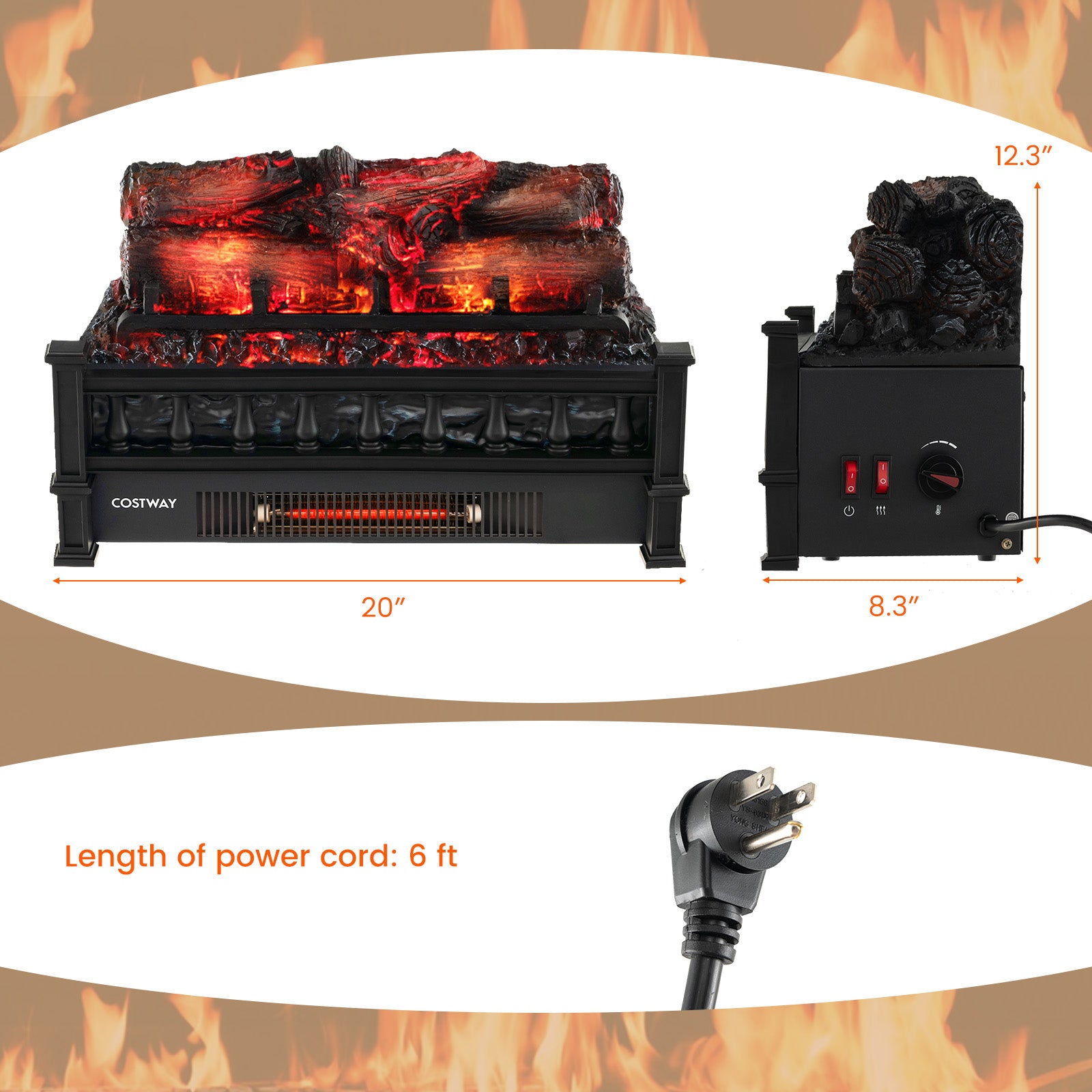 20" Electric Fireplace Heater with Realistic Pinewood Ember Bed