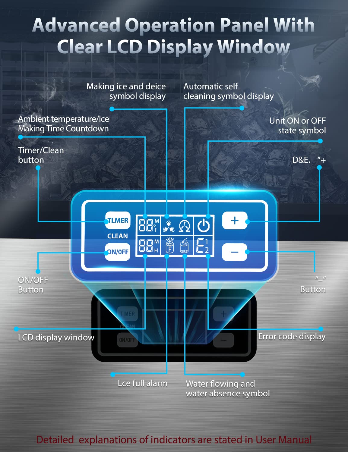 Easy to Use: With an easy-to-use control panel, you can check it out all the time to know the status of the ice-making.
