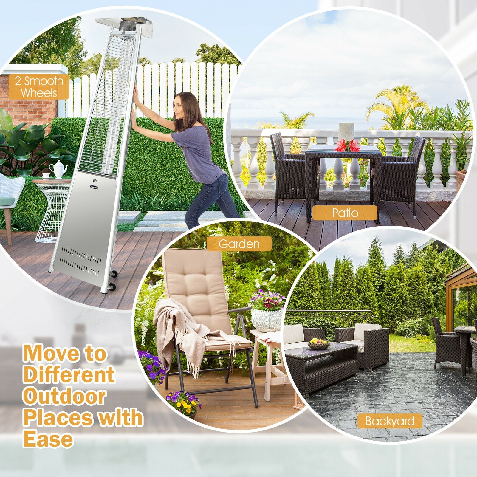 42 000 BTU Stainless Steel Pyramid Patio Heater With Wheels
