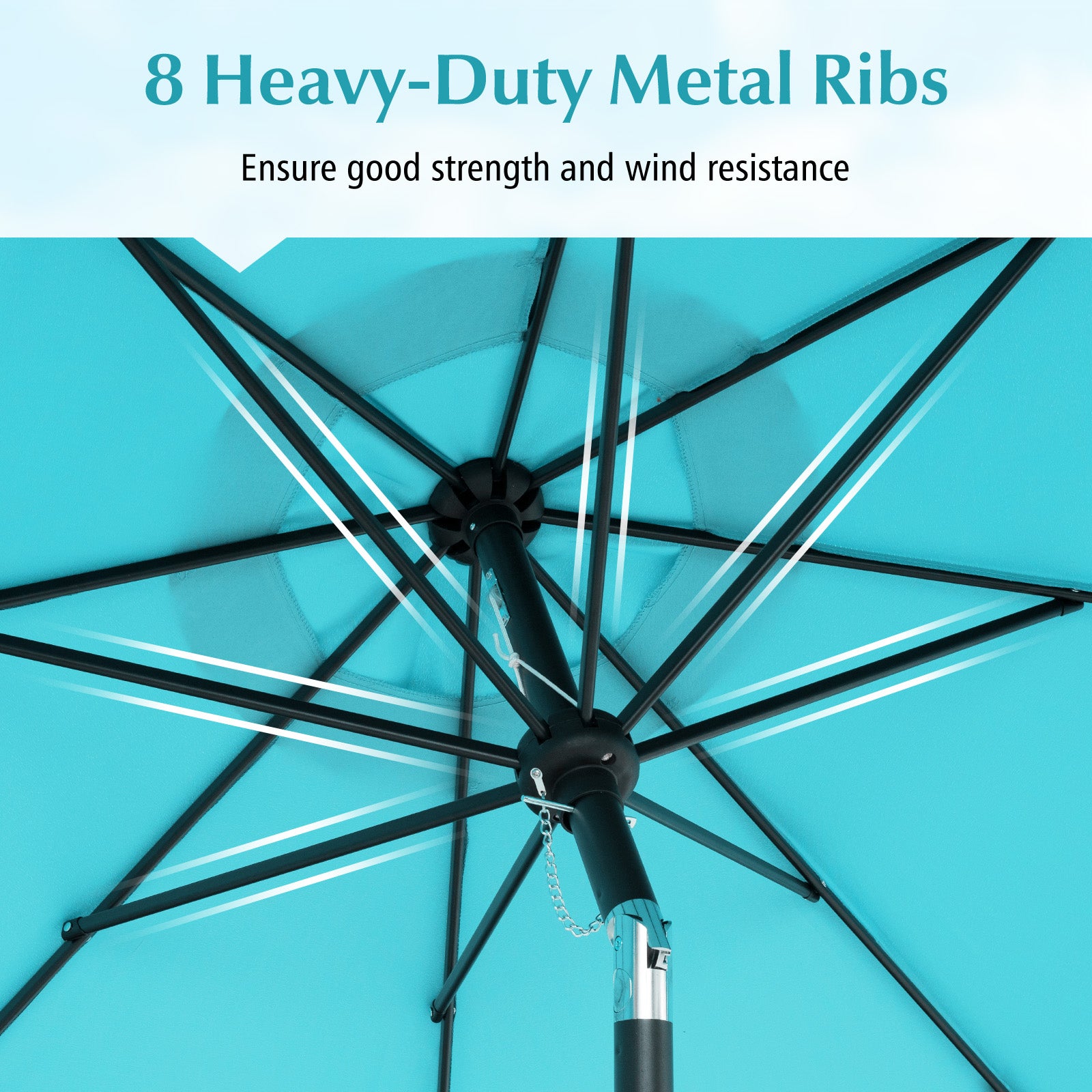- 8 heavy-duty umbrella ribs ensures good strength and wind resistance