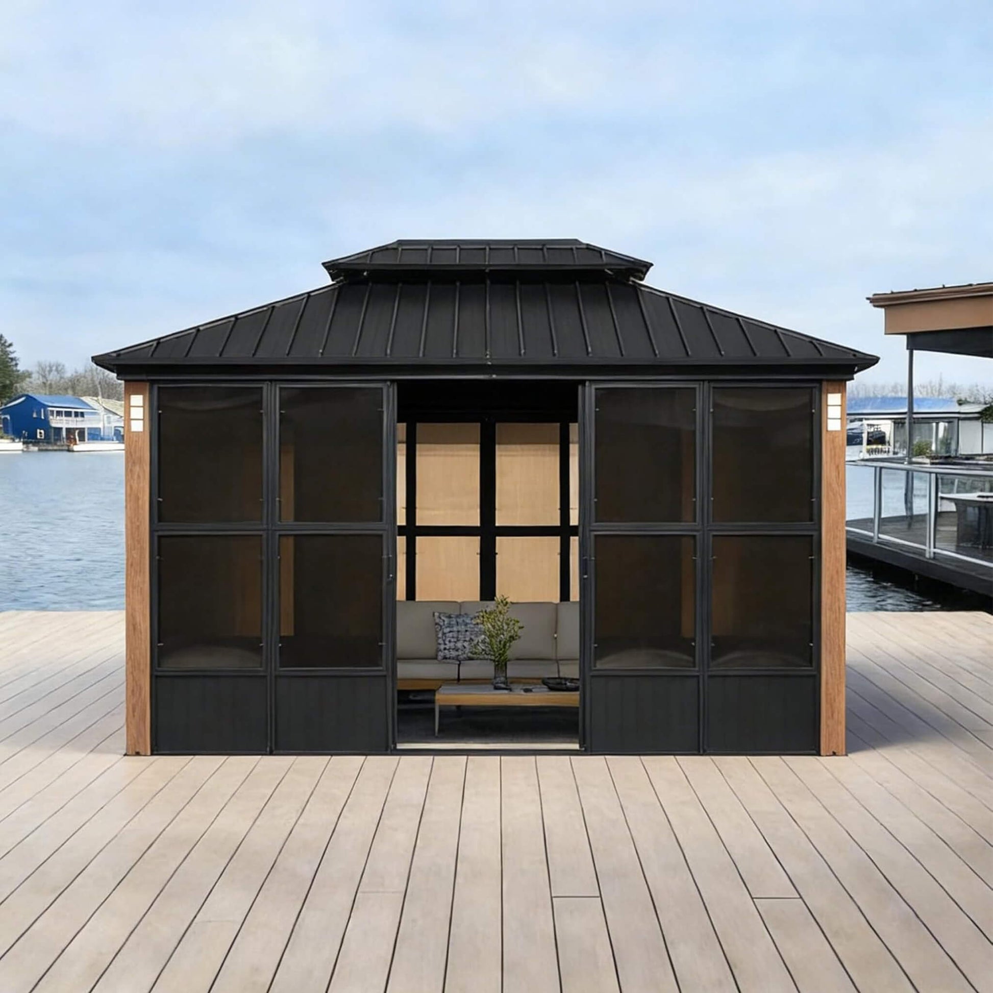 Alora Luxury Heavy-Duty Hardtop Sunroom with Aluminum Frame and LED Lights
