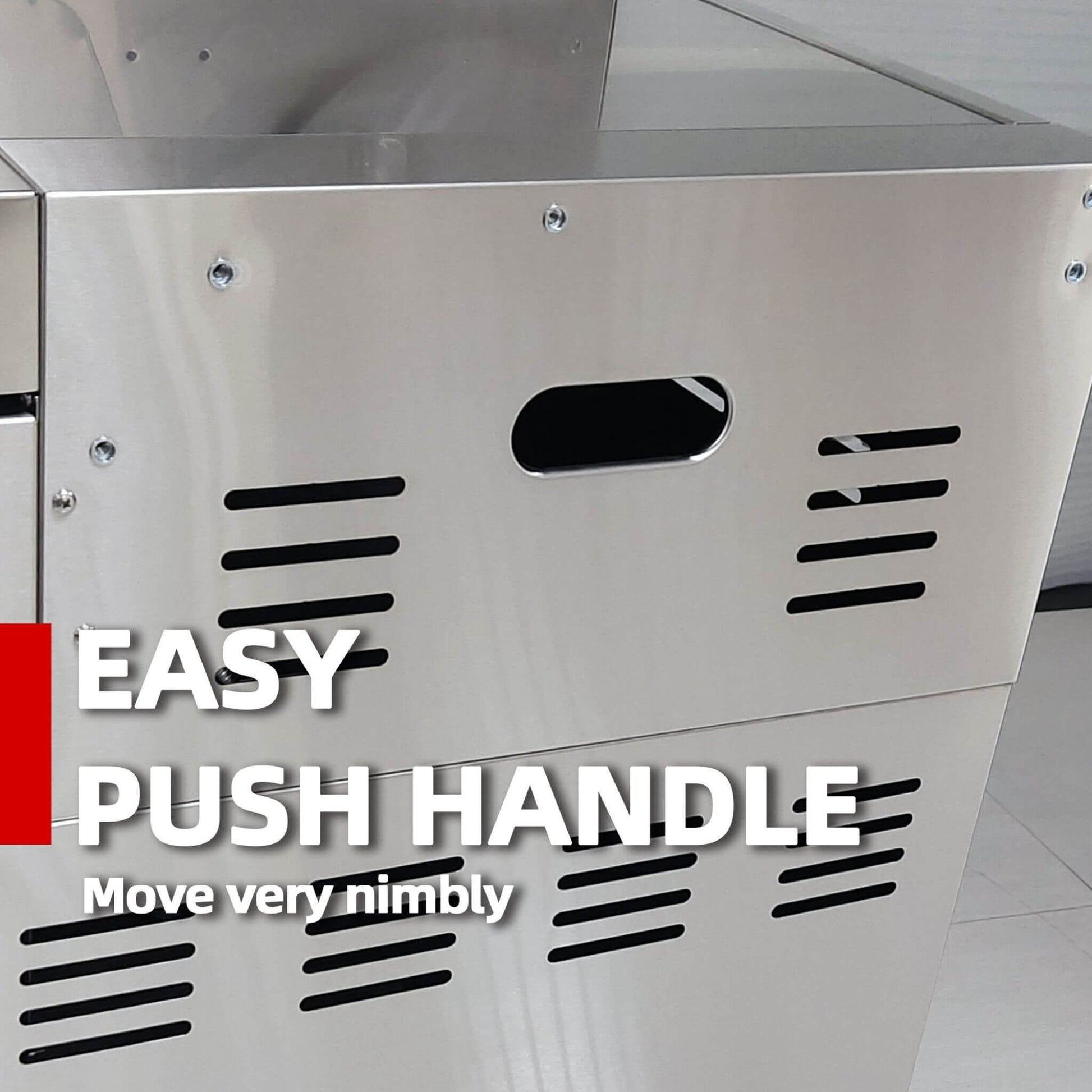- Enjoy the convenience of effortless mobility with the Castelle Flame Island's smooth-rolling castor wheels, allowing you to easily reposition your outdoor cooking station to suit your entertaining needs.
