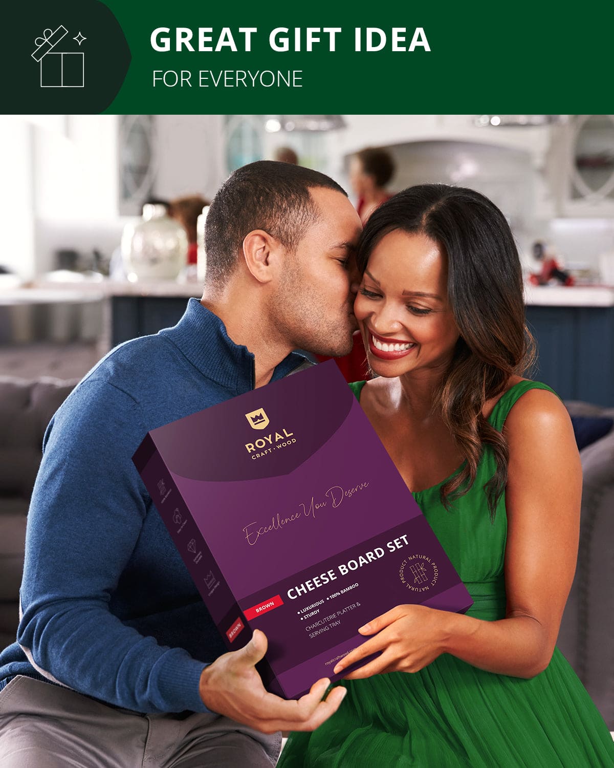 Cheese Board Set w/knives, 16.5“x11”, Brown