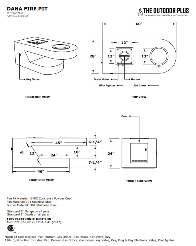 Dana Fire Pit Table - Specification Sheet