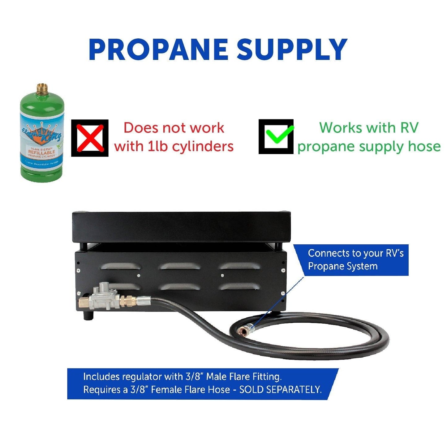 Flame King 17 inch LP Griddle with Small Regulator for RV pullout