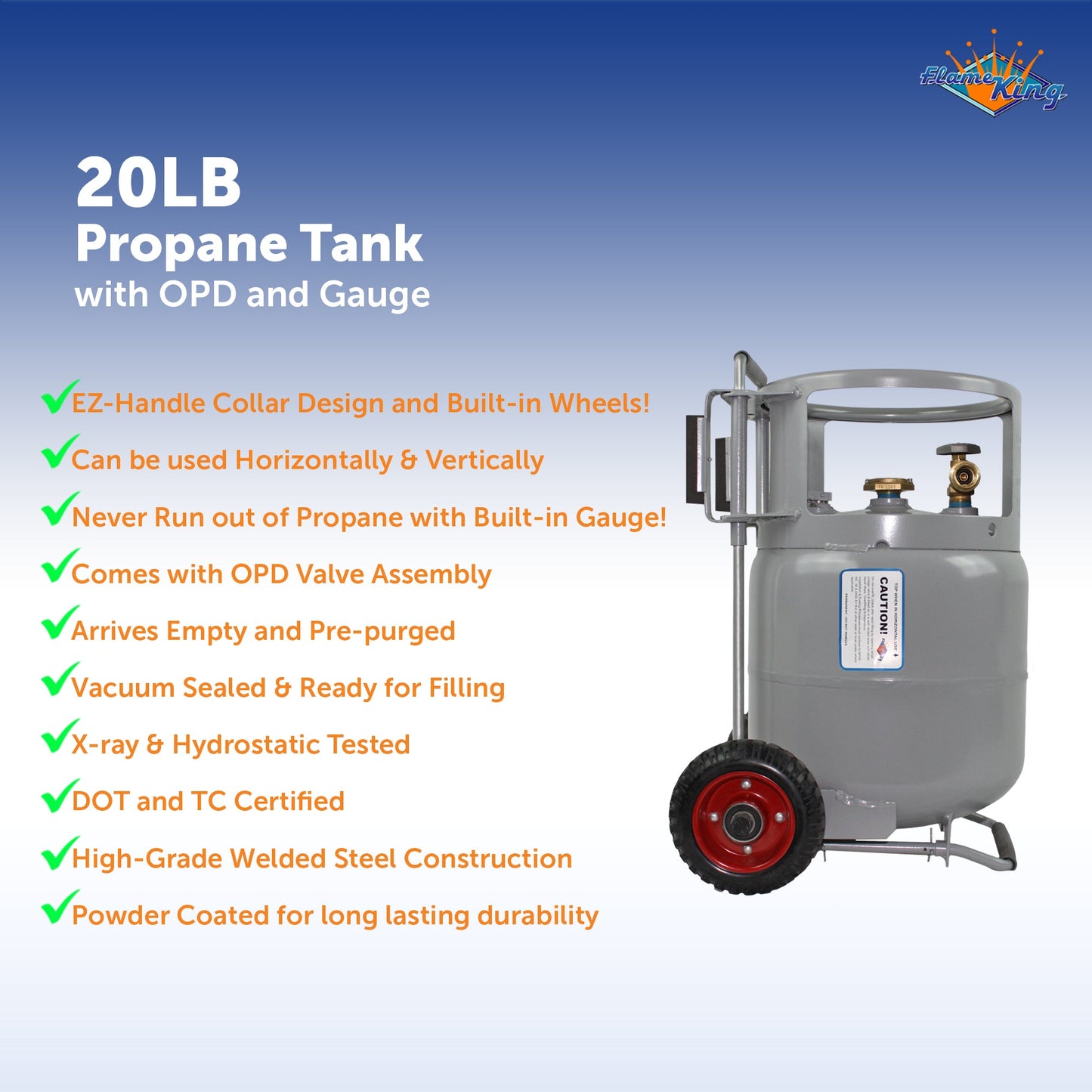 Flame King 20lb Horizontal & Vertical Propane Cylinder Gauge OPD & Wheels