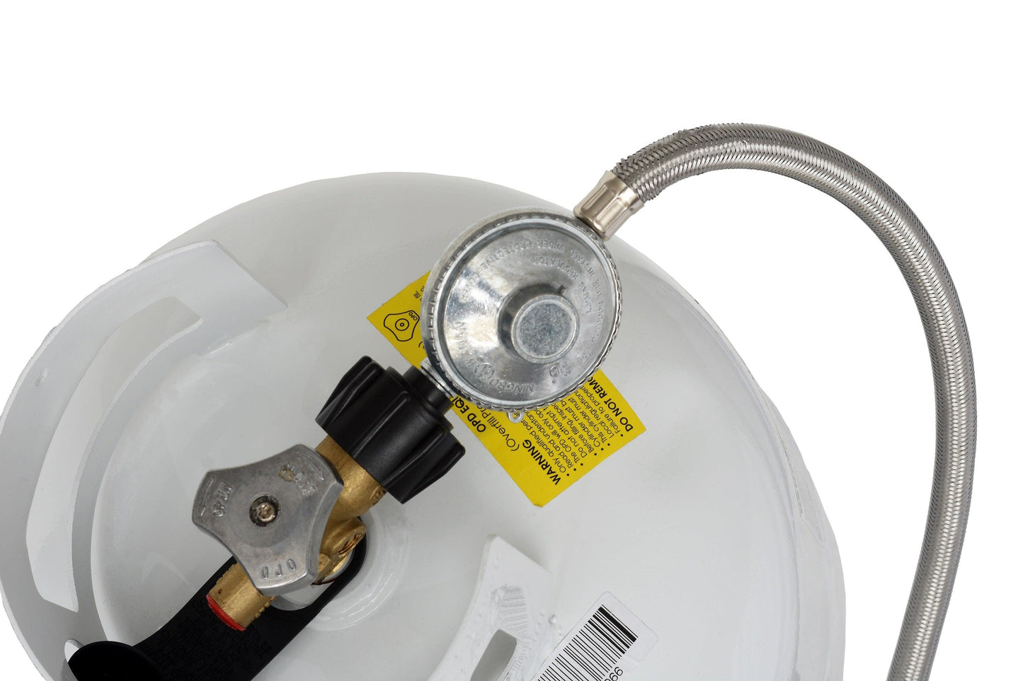 Flame King 5 FT QCC to 3/8″ Female Flare Nut w/Regulator-Steel Braided Hose