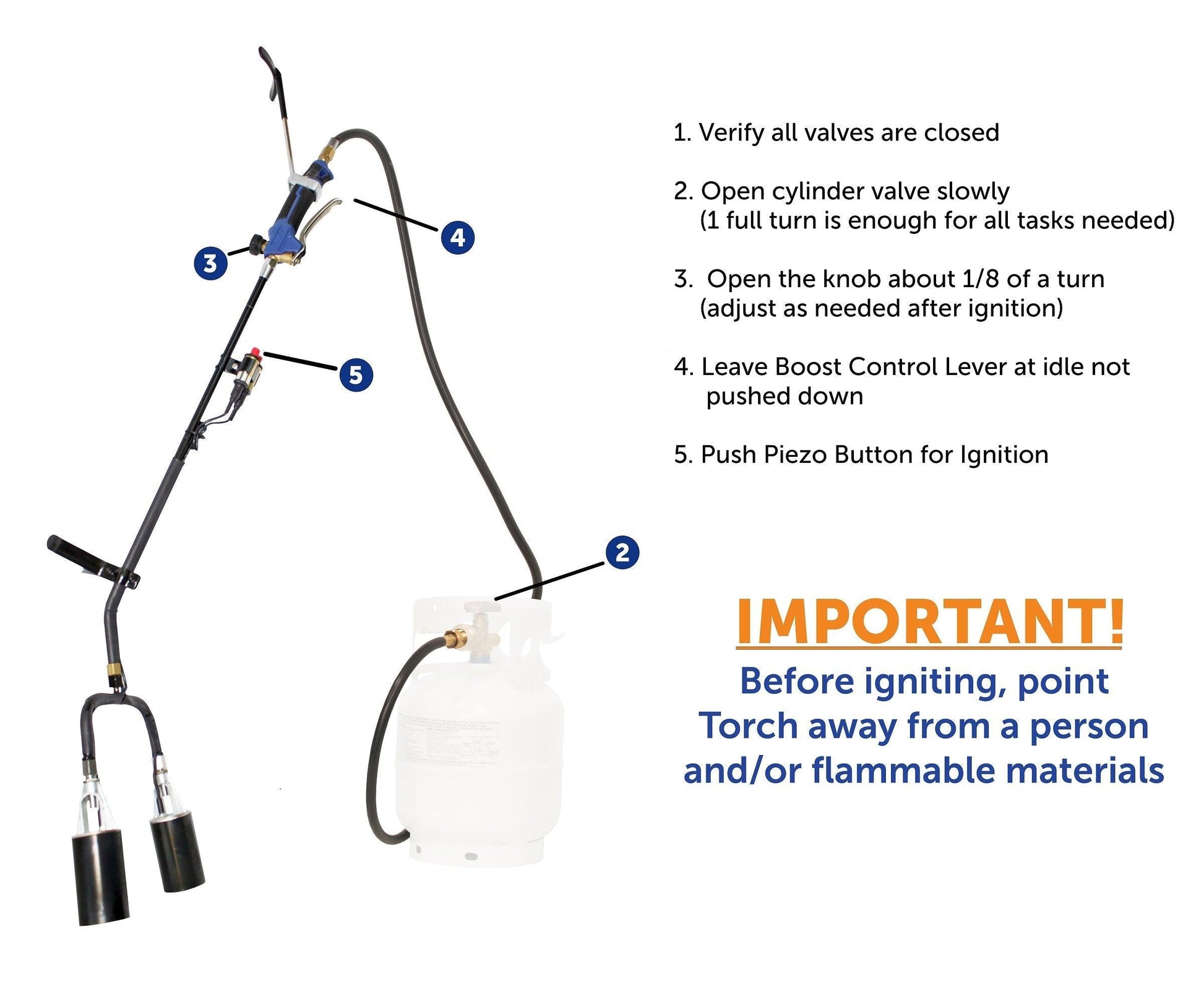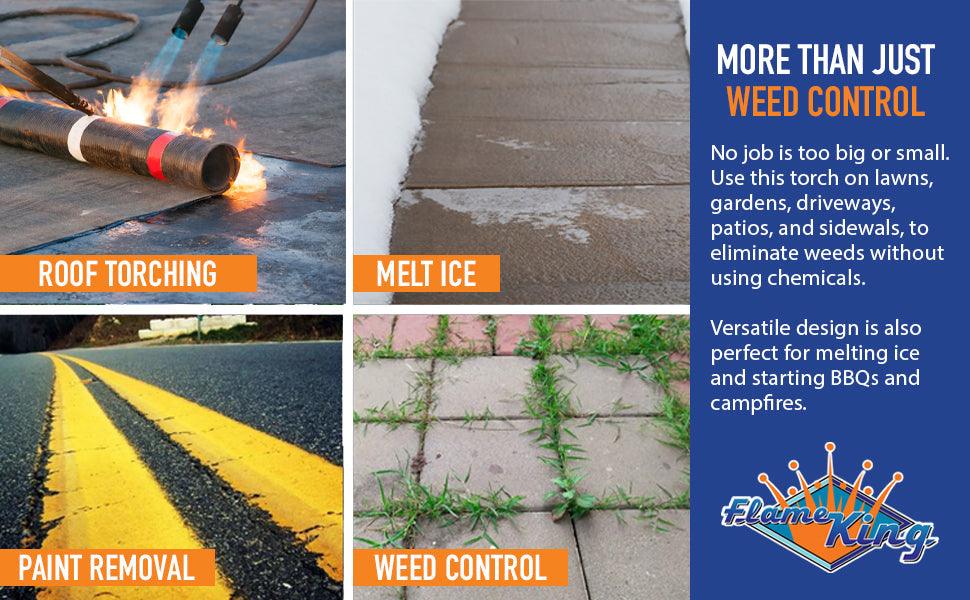 Get your job done 2X faster with the Flame King YSN1000K 500,000 BTU Dual Propane Torch! This torch is your perfect buddy to burn weeds at a faster rate, melt snow and ice, remove parking lot markings and paint, thaw frozen pipes and equipment, and melt tar and asphalt. Also used for torch roofing for waterproofing purposes. The plastic handle is ergonomically designed, making it comfortable to hold for long-term use, lessening the chance of slipping or dropping the torch. At 500,000 BTU and two large wide barrels, this torch is a great choice for any heavy-duty jobs around your home. A 16-foot hose is included to provide extra reach. The flame size can be controlled through the adjusting control valve. Use the Boost Control Lever to create a super flame. Comes with easy-to-reach single or dual auto-igniters that provide a constant flow of sparks making lighting this torch very easy. Works with standard liquid propane cylinders including 5lbs, 10lbs, 20lbs, 30lbs, 40lbs & 100lbs. Arrives fully assembled. 1-YEAR MANUFACTURER’S DEFECT WARRANTY.