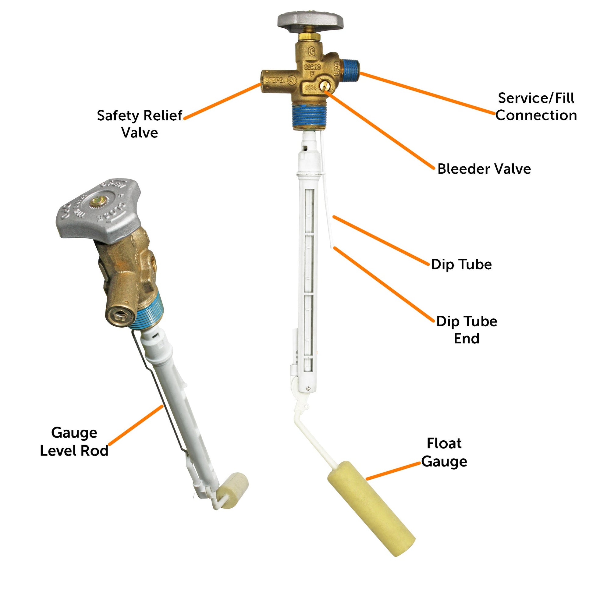 Flame King Overfill Protection Valve helps prevent the 20LB Buffer propane tank overfills by closing when propane liquid level reaches to an 80% fill rate. The Float Gauge measures the level of propane inside the tank - it moves up and down with the liquid propane level. The gauge dial on the outside of the tank (sold separately) then displays the approximate percentage of propane remaining. Made of high quality premium materials for your safety - UL Listed. COMPATIBLE with Flame King YSN201BT 20LB Steel Floor Buffer Propane Tank Cylinder