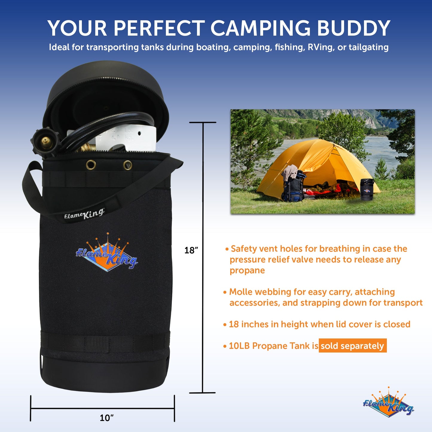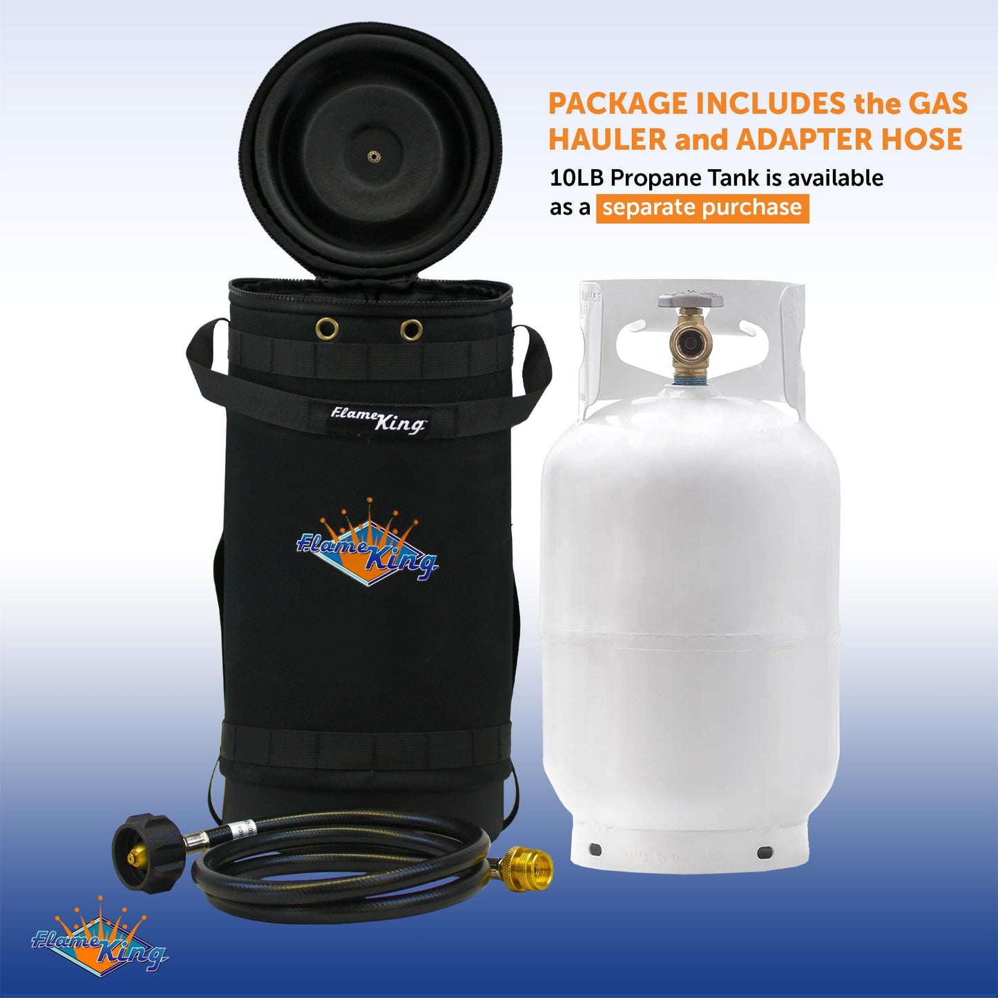 Flame King Propane Gas Hauler Kit-Insulated Protective Carry Case for 10lb Propane Tank plus Adapter Hose