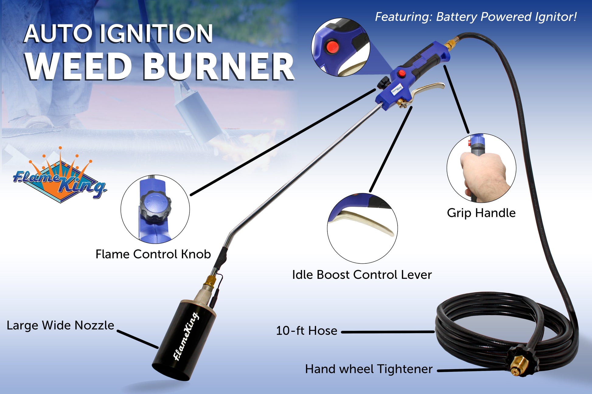Flame King Propane Weed Burner Torch 340,000 BTU with Battery Operated Igniter