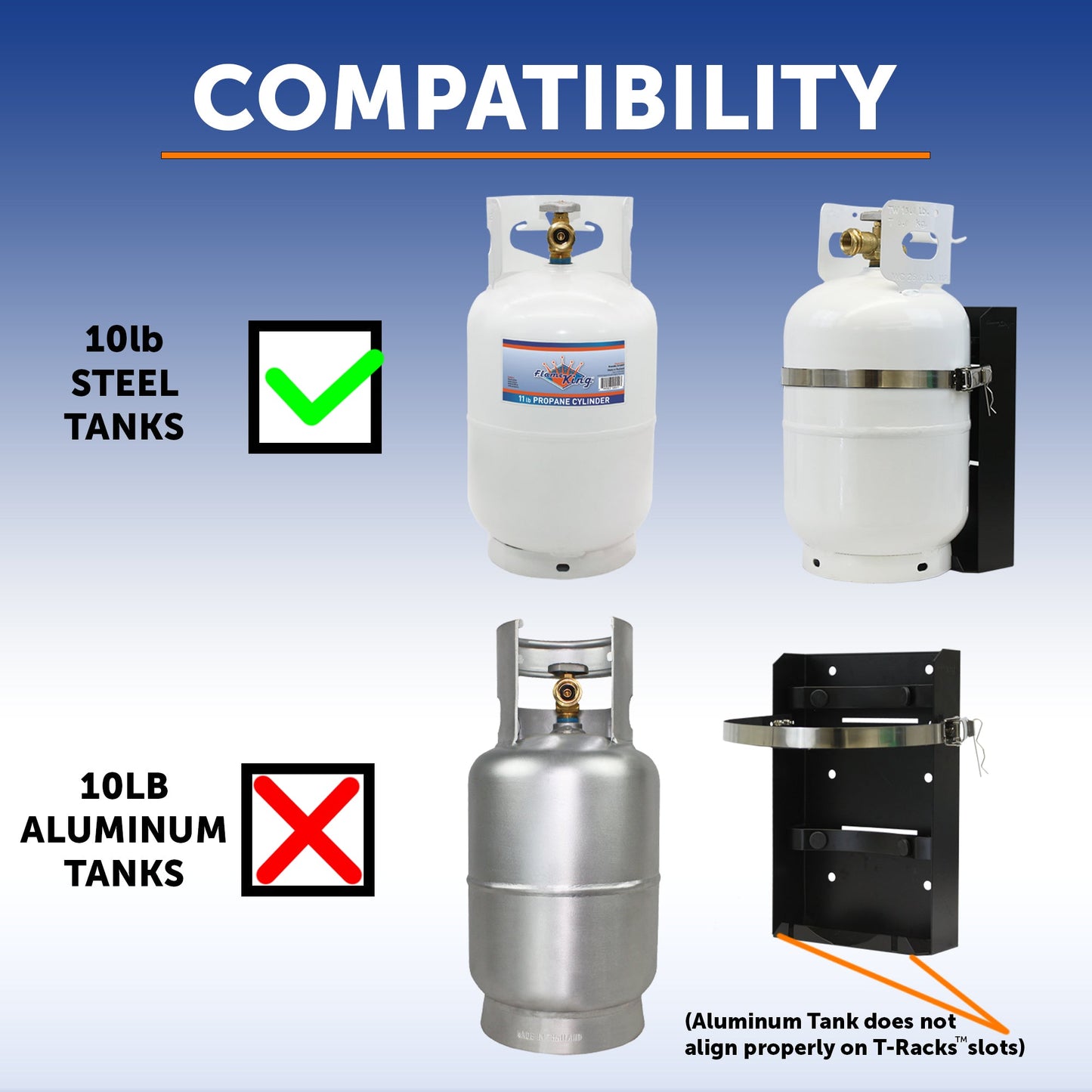 Flame King T-Racks 10lb Propane Tank Mounting Brackets Strap Campervan Overland Vehicles