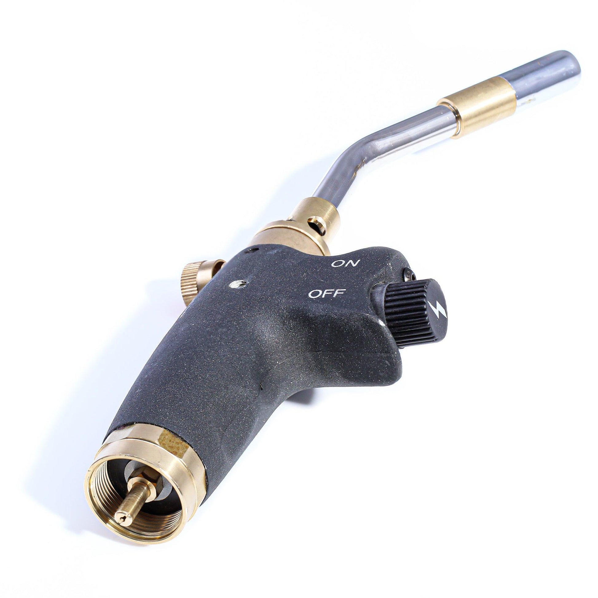 The torch head is designed with one handed use in mind. The cast aluminum body is durable, and the flame adjustment knob easy to use. On-off switches and ignition trigger are easily reachable by a single finger without having to shift your grip. You can also use it hands free! After stabilizing the canister in a tip free base on a level surface, use the Lock Up Flame Control to keep a steady burn while you work. We recommend using a single shield between you and the flame.