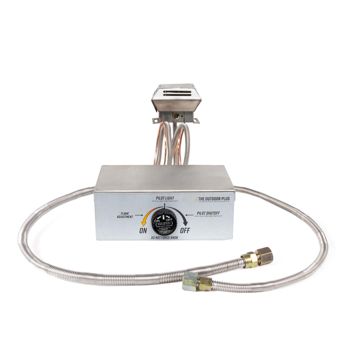 The Flame Sense System with Push Button Spark Igniter is a valve with a sensor that will shut-off automatically when it detects the flame has gone out but with a Push Button Spark Igniter. Part Number: TOP-FSPBI