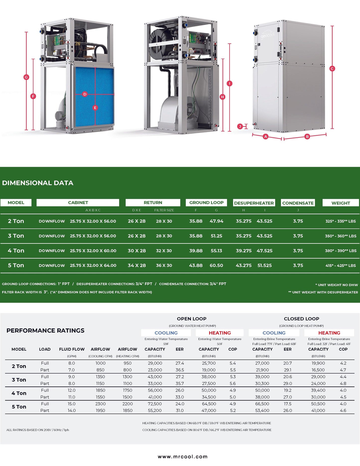 GeoCool Geothermal Downflow Package Units - 60K BTU Two-Stage 230V 1-Phase 60Hz