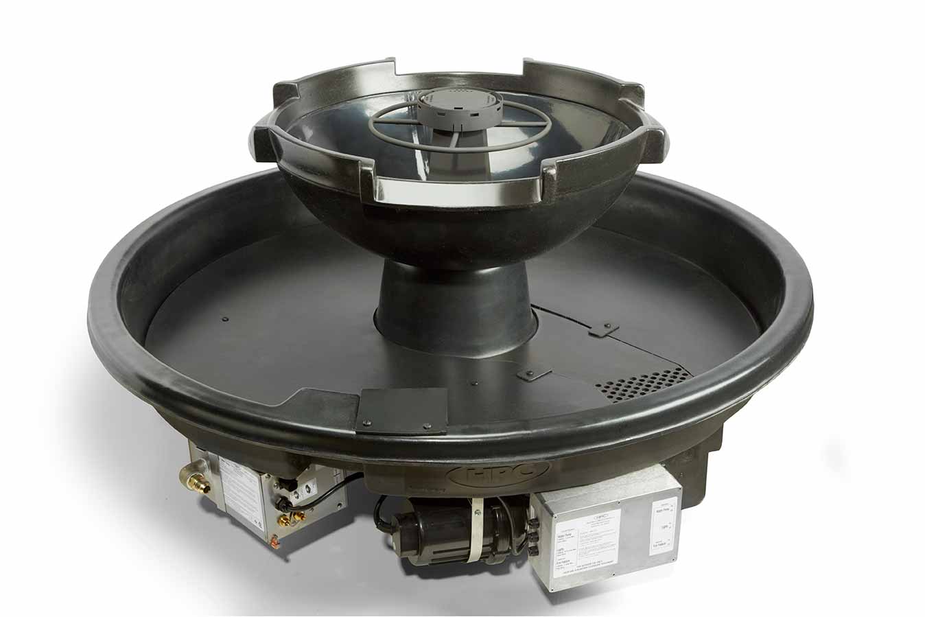The fire ring is completely submerged underwater using our patent pending burner design and back flow prevention to protect the controls. HPC's H2OnFire produces a very appealing flame utilizing only 65,000 Btu. This is NOT a match lit system- it is remote controlled with auto relight. Our ignition and flame sensing network is located in the center tower monitoring flame conditions at all times. Ships in crate on pallet.