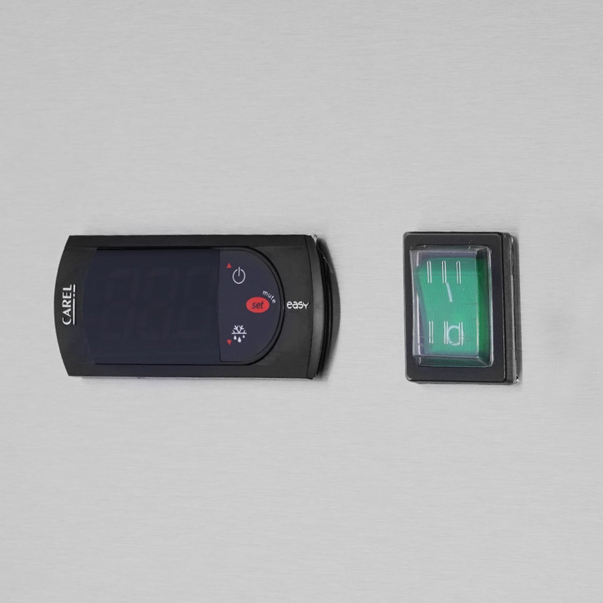 - The Carel digital temperature display and controller allow effortless monitoring and adjustments to keep your items at the perfect temperature.