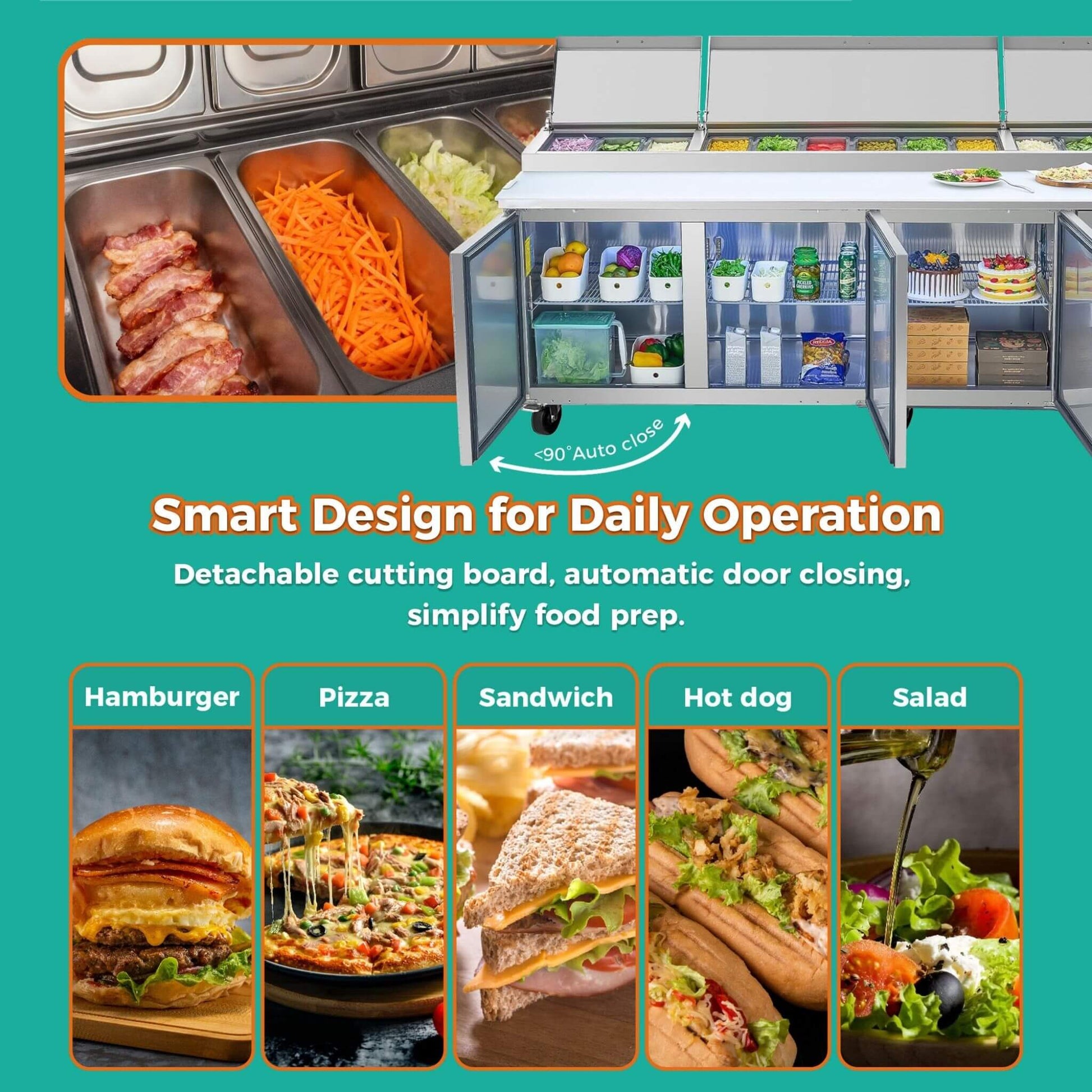 Heavy-Duty 93" Commercial Stainless Steel Pizza Prep Table With Refrigeration