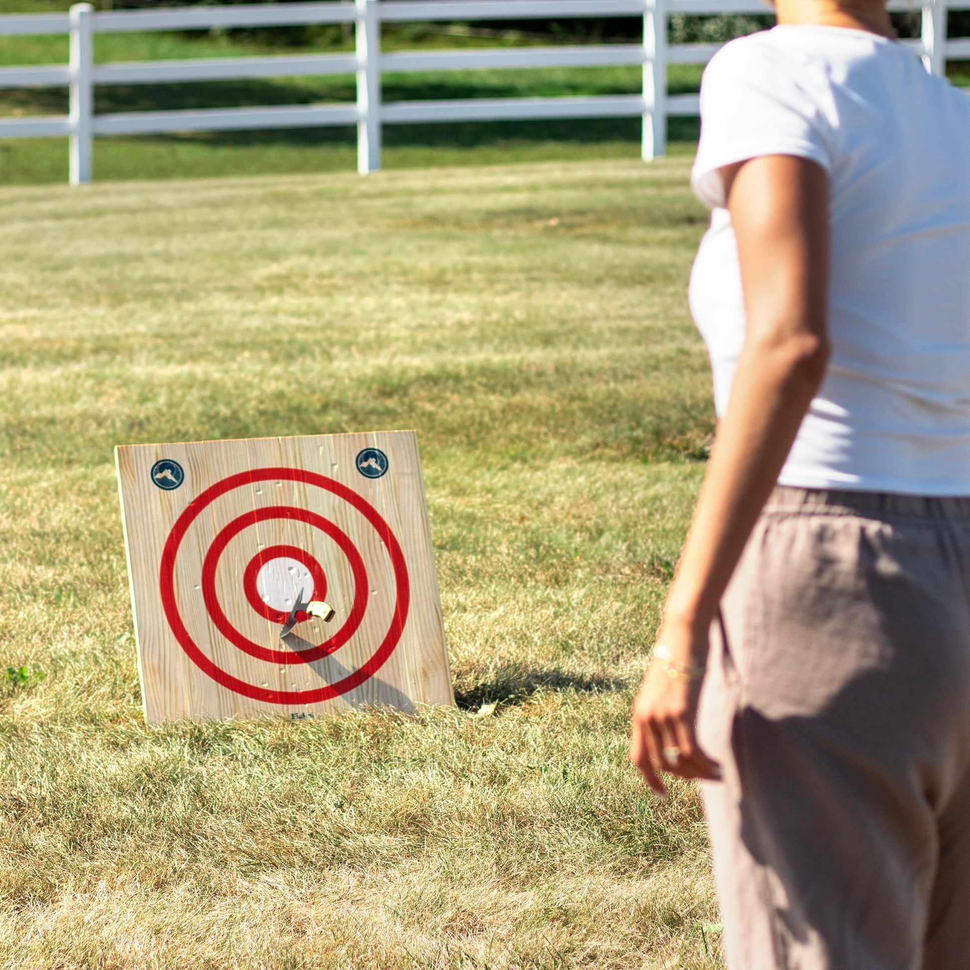 Compact but Sturdy: 2ft x 2ft target, 7" axes for realistic throwing feel in a smaller footprint