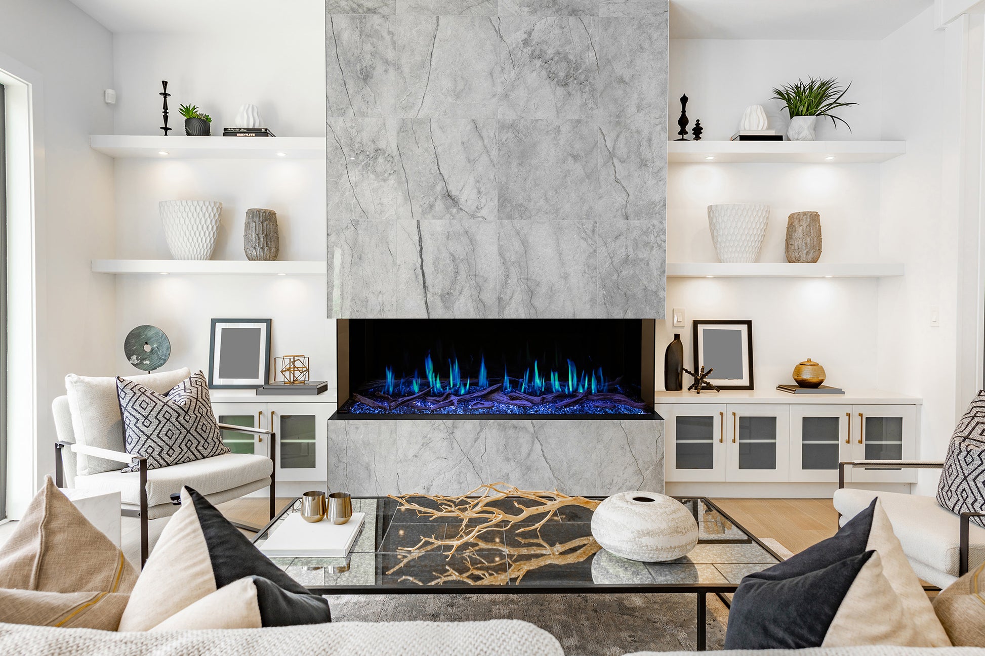 - Multi-Color Ember Bed and Downlighting