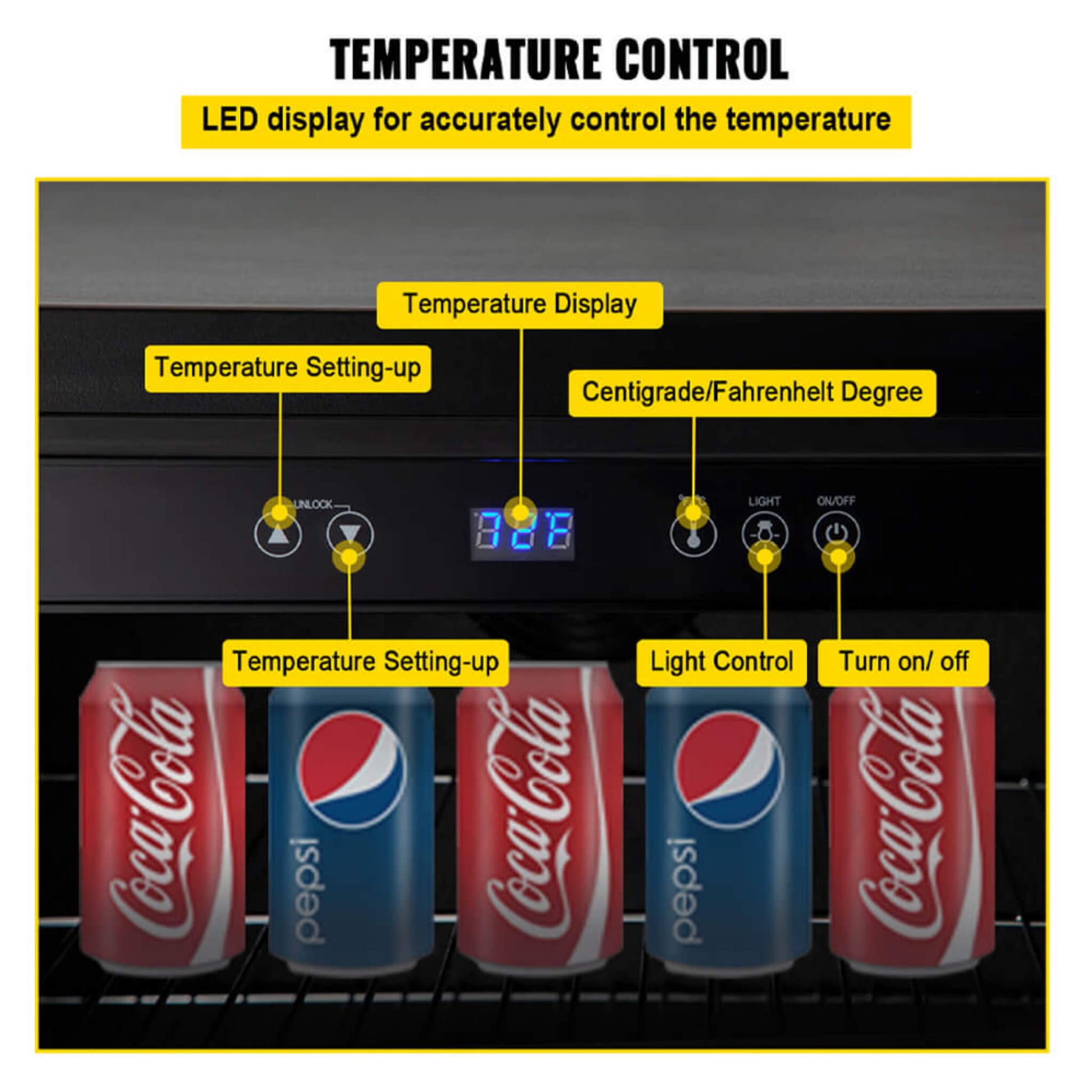 - The digital touch blue LED display allows you to set the temperature anywhere between 32°F and 65°F, offering flexibility for all your storage needs.