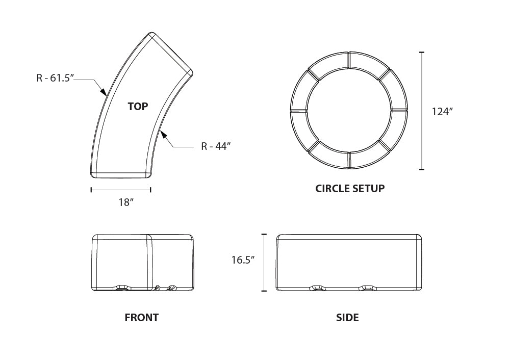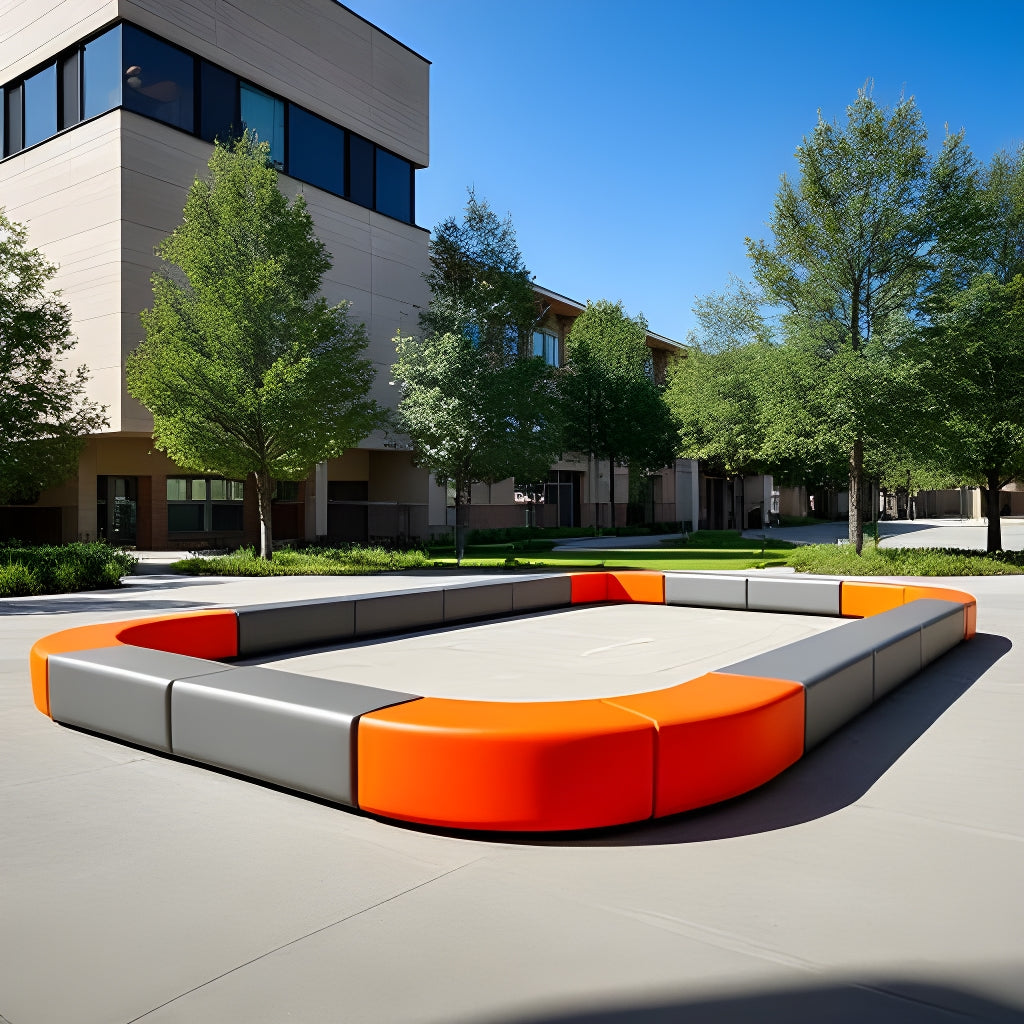 The Swerve (arc shaped modular bench) and the Dash (straight modular bench) are suitable for both indoor and outdoor use. They can be set up alone or together to create a variety of arrangements
