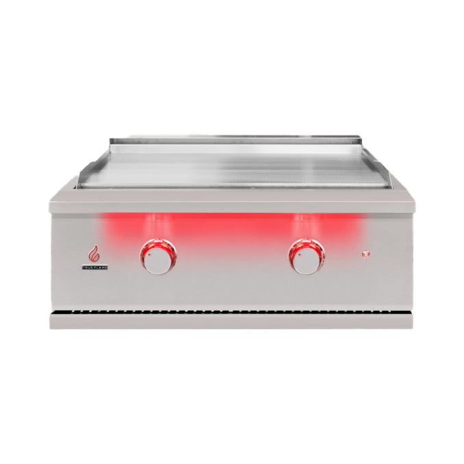 Explore new flavors with the premium TrueFlame Gas Griddle. This heavy-duty #304 stainless steel flat top grill diversifies your outdoor kitchen menu with 495 square inches of cooking space and 36,000 BTUs of searing power.