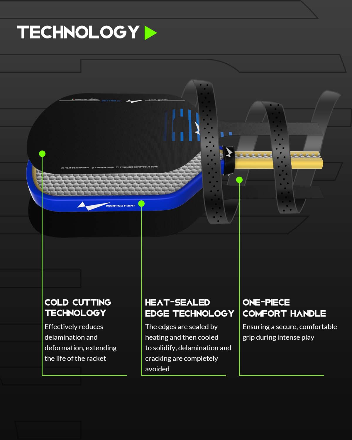 - Get 10mm Wide Honeycomb Core in Rhythm pickleball paddle: A signature feature of the Rhythm series, this advanced soft 10mm wide honeycomb core that has better bounce and provides more power, especially for players who like to play with power. Wide honeycomb core also effectively reduces vibration, reduces arm fatigue. Ideal for players advancing their game without the burden of a heavy paddle.